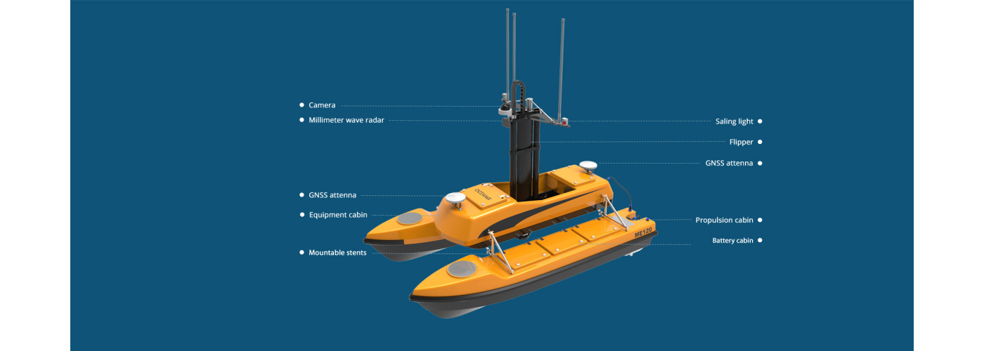 The payload cabin of the ME120 USV is replaceable, user can freely change and install different instruments according to mission requirements.